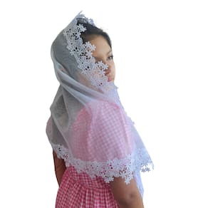 Confeccionado com Filó Verona (75% algodão e 25% poliéster) e Renda Guipir (100% poliéster).