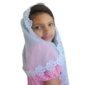 Confeccionado com Filó Verona (75% algodão e 25% poliéster) e Renda Guipir (100% poliéster).