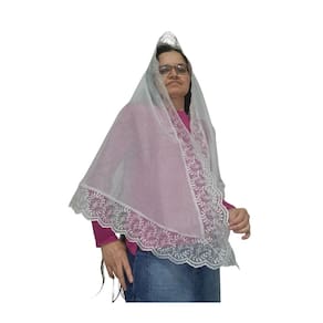 Véu CCB Organista Renda Larga Tule Redondo Retangular Adulto