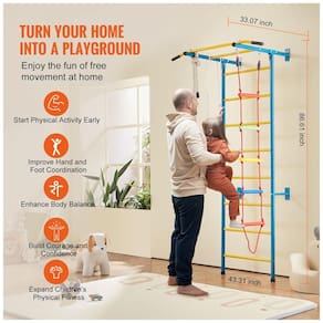 Conjunto de Escalada Multifuncional: Nosso ginásio de parede para crianças combina uma barra de pullup, argolas de ginástica, escada de corda e outras atividades de brincadeira para ajudar as crianças a se exercitarem, melhorarem a coordenação e se divertirem. Desenvolvimento Abrangente: Esta escalada de parede interna para crianças é projetada para fortalecer fisicamente as crianças, melhorar a coordenação motora e incentivá-las a enfrentar desafios. Superar medos e tentar novas escaladas promove coragem, confiança e crescimento pessoal. Material de Aço Carbono de Alta Resistência: Feito de aço carbono durável, este ginásio interno para crianças é resistente a arranhões e desgaste, garantindo estabilidade aprimorada e longa vida útil. A superfície resistente à ferrugem é fácil de limpar com um pano úmido. Suporta até 100kg: Com uma capacidade de peso máxima de 100kg, até mesmo adultos podem desfrutar o ginásio de parede interno, tornando-o perfeito para brincadeiras em família e promovendo a união e diversão com atividades físicas juntas. Instalação Fácil: Nosso ginásio para crianças é simples e rápido de instalar com um guia de instalação detalhado. Pode ser montado em quartos infantis, centros de aprendizagem precoce ou pré-escolas, sendo versátil para uma variedade de espaços.
