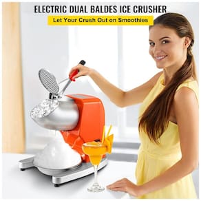 Maior capacidade de entrada de gelo com um barril de entrada de gelo alargado e orifício de entrada de gelo alargado, medindo 4,5 11, de diâmetro, nosso criador de cone de neve elétrico pode zenar mais gelo sem dificuldade. Você pode despejar pequenos cubos de gelo e grandes blocos de gelo em Quanto maior for a capacidade de gelo, mais gelo raspado ele pode produzir. Este triturador de gelo pode fornecer gelo de neve macio, fofo e pulverulento, auxiliado por uma entrada mais larga, maior capacidade, motor potente e lâminas duplas afiadas.