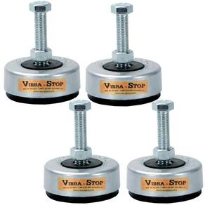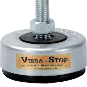 Vibra-Stop INTERMEDIÁRIO Antivibratório 5000/20000 KG Rosca 3/4 POL INT34 Kit 4 Peças VIBRA-STOP Amortecedor de Vibração Vibra-Stop INTERMEDIÁRIO - Rosca 3/4 pol Os amortecedores Vibra-Stop atende a necessidade de diminuir a vibração de produtos como compressores, bombas d'água, Serras, entre outros que listamos abaixo em aplicações. Este amortecedor desempenha uma excelente redução nos níveis de vibração e impacto possibilitando o perfeito alinhamento da máquina/equipamento pelo seu exclusivo sistema de nivelamento que compensa, de forma rápida e simples, pequenos desníveis do piso. DADOS TÉCNICOS: Carga estática por peça: 5.000 kg Carga dinâmica por peça: 20.000 kg Diâmetro externo: 150 mm Diâmetro da borracha: 135 mm Altura regulável: 50 - 70 mm Dureza da borracha: 75 shores A Parafuso de ajuste: 3/4 Pol APLICAÇÕES: Compressores; Bomba d'água; Lixadeiras; Limadoras; Serras; Politrizes; Furadeiras; Trituradores; Prensas; Tornos; Fresas; Grupo Geradores; Retíficas; Injetoras; Guilhotinas. Garantia: 12 meses Modelo: INT34 Quantidade: 4 unidades Marca: Vibra-Stop * Imagens meramente ilustrativas.