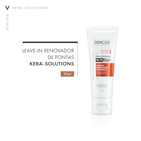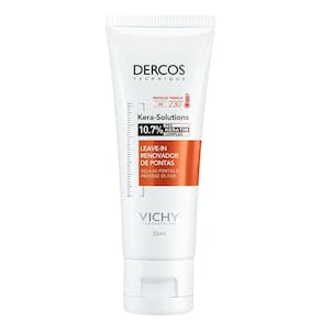 Leave-in Vichy Dercos Kera-Solutions age de forma precisa para restauração e renovação das pontas. Além disso, proporciona ação antifrizz e antiumidade por até 48 horas.