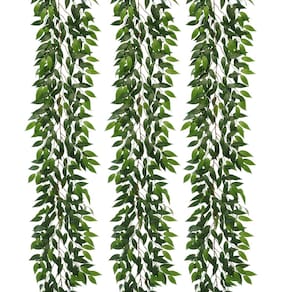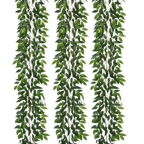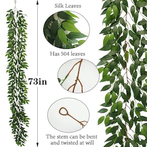 Cor: verde. Comprimento da videira: 185,4 cm. Material: seda e plástico. - TAMANHO DE VINHAS: O pacote inclui 3 feixes de vinhas ruscus italianas falsas com folhas verdes e cada uma com um comprimento de 173 cm. - BENEFÍCIO: os ramos e folhas exuberantes de guirlanda de folhas de ruscus italiano falso não precisam ser regados e não criam mosquitos e moscas; flores e plantas artificiais não precisam ser cultivadas manualmente, o que evita o trabalho de regar, podar e fundir insetos; não precisa ser fotossintetizado, o que é muito adequado para famílias com crianças e idosos, mas both husband and ww ife vai trabalhar. - Material: as folhas de guirlanda de ruscus italiano espesso artificial são feitas de seda de alta qualidade. Elas são processadas com tingimento, não desbotam e também são à prova d'água. A haste é feita de plástico ecológico. É macia e resistente e pode ser dobrada e torcida à vontade. - Quase natural: as plantas suspensas de videiras para bebês são estéticas para qualquer projeto decorativo ou decoração de casa boho. Não só pode ser utilizado para decoração de interiores, mas também pode ser utilizado como decoração principal para suas várias festas ao ar livre ou outras atividades, para permitir que você sinta o charme mágico da natureza. utilizado para fornecer privacidade e atmosfera adicionais em sua vida. - Uso: Estas videiras verdes penduradas para pano de fundo de sofá, reforma de sala, decoração de janela, sala de estar, cozinha, decoração de parede, acessórios de festa temática da selva, festa doce 16, quarto de dinossauro, sala de aula, pano de fundo verde, treliça de pátio, arco ao ar livre, casamento, quintal e assim por diante.
