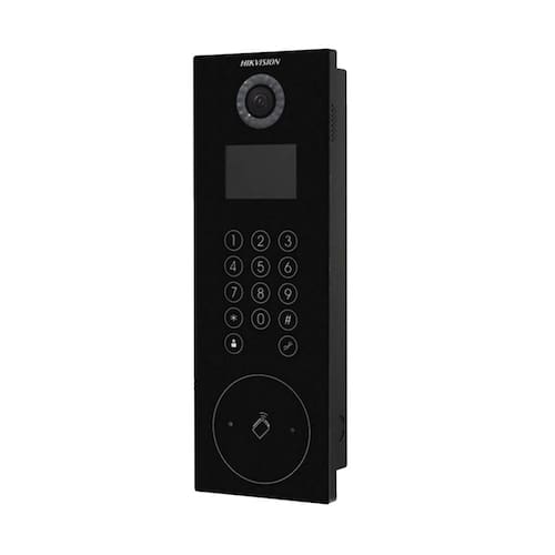 "Informações do Produto Estação de porta Video Intercom D Series Parâmetros do sistema Processador Processador SOC Integrado de Alto Desempenho Sistema de Operação Sistema Operacional Linux Embarcado Parâmetros de Vídeo Câmera CMOS Low Illumination 1.3 MP HD Câmera Colorida Padrão de compactação de vídeo H.264 Resolução 1280 x 720 Taxa de quadros de vídeo PAL: 25 fps, NTSC: 30 fps Parâmetros de exibição Tela de exibição 3,5 polegadas colorido TFT LCD Resolução do ecrã 480 × 320 Método de Operação Teclado de Toque Capacitivo Interface de operação Display LCD, Menu Fácil Parâmetros de áudio Entrada de Áudio Microfone Omnidirecional Integrado Saída de Áudio Altifalante Integrado Padrão de Compressão de Áudio G.711 U Taxa de Compressão de Áudio 64 Kbps Qualidade de áudio supressão de ruído e cancelamento de echo Parâmetros de Rede Ethernet: Ethernet auto-adaptativa 10/100/1000 Mbps Protocolo de rede: TCP / IP, RTSP Parâmetros de controle de acesso Leitor de cartão interno Leitor de cartão IC embutido Leitor de cartão externo Wiegand 26, Wiegand 34 ou RS-485 IC Reader Detecção Magnética da Porta: Detecta Status Magnético da Porta Parâmetros de Alarme Entrada de Alarme: Alarme Magnético da Porta, Alarme de Violação Interfaces de dispositivos Interface de Rede 1 Interface Ethernet Auto-Adaptável RJ-45 10/100/1000 Mbps Porta Half-Duplex RS-485 1 RS-485 Entrada de E / S 8 Saída de E / S 4 Wiegand 1 porta Wiegand para acessar o leitor de cartão Wiegand IC USB 1 USB 2.0, disco de apoio U Geral Material Plástico Fonte de Alimentação 12 VDC Consumo de energia =15 W Temperatura de trabalho -40 ° C a + 70 ° C (-40 ° F a 158 ° F) Umidade de trabalho 10% a 90% Nível de proteção IP IP65 Dimensões (L × L × A) 418 mm × 145 mm × 61 mm (16,5 ""× 5,7"" × 2,4 "") Certificação FCC, IC, CE, C-TICK, ROHS, ALCANCE, WEEE"