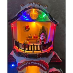 Este item encantador combina cenário tridimensional da fábrica brinquedos, neve, partes móveis que simulam os brinquedos caindo no saco de presentes e luz encantadora que tornam qualquer ambiente mais aconchegante e festivo. Com música natalina e um design sofisticado, este Cenário Vila Natalina Musical Natal Iluminado com Movimento é o toque perfeito para criar uma atmosfera alegre durante as festas de fim de ano.
