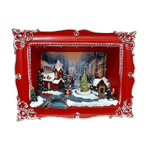 Enfeite Natalino Musical Quadro Cenário de Natal Luminoso com Movimento