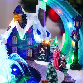 Cenário Vila Natalina Musical com Fonte de Água, Luz e Música - O Encanto do Natal em Sua Casa