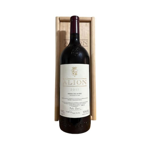 As bodegas alión surgiram em 1992 como um contraponto à enorme tradição de vega sicilia. Seu vinho busca ser a máxima expressão da casta tinto fino tempranillo e um dos grandes representantes do estilo ribera del duero. A seleção e o cultivo das uvas seguem os mesmos rígidos padrões de qualidade dos vega sicilia. A diferença está nas vinhas, um pouco mais jovens do que as utilizadas para o vega sicilia unico e o valbuena 5º ao. Além disso, o alión é elaborado 100% com a uva tinto fino. As técnicas de vinificação são extremamente modernas e o envelhecimento acontece sempre em barricas novas de carvalho francês. É um colecionador de prêmios, que recebeu de robert parker adjetivos como sensacional, opulento, voluptuoso e estiloso, de grande estatura. A safra de 2018 recebeu nada menos do que 95 pontos de robert parker, enquanto a safra de 2017 recebeu 95 pontos de james suckling. Pontuações: James suckling 2017- 95 pontos Guia pein 2017- 94 pontos Tim atkin 2017- 94 pontos Antonio galloni 2017- 94 pontos Robert parker 2017- 94 pontos Wine spectator 2017- 91 pontos