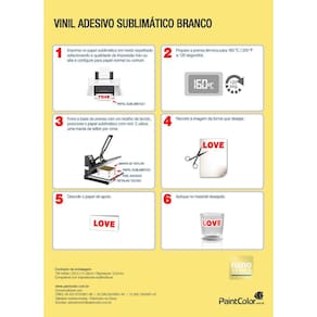 Agora você pode fazer adesivos, rótulos e lembrancinhas surpreendentes com Vinil Sublimático Adesivo Branco. Sua cola é extremamente forte e resistente constituído por uma cobertura brilhosa. Imprima em um papel sublimático e transfira para o Vinil sublimático adesivo através da prensa térmica. Indicado para: Adesivos, rótulos e lembrancinhas. Características: Tamanho: 29,7×21,2cm Tecnologia: Vinil sublimático Material: Vinil (Branco) Compatibilidade: Jato de tinta sublimático Gramatura: 200g/m² Espessura: 0,23 Origem: Nacional Quantidade: 100 folhas Garantia: Contra defeito de fabricação. Modo de uso: Leve à prensa térmica à 160 ºC por 120 segundos em pressão média.