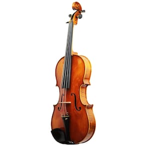 Viola de arco semi- feito em oficina, com madeiras maciças melhores selecionadas e montagens em ébano. Excelente custo-benefício para músicos exigentes. Todos os ajustes feitos pelo luthier na alma, pestana, cravelhas e cavalete, são todos refinados e permitem ao músico, ao receber o instrumento, já tocar com facilidade.