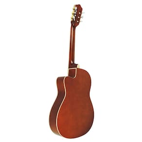 Fabricado com madeiras especialmente selecionadas para este tipo de instrumento, o Spruce no tampo é uma madeira nobre e traz normalmente o médio e agudo mais aveludado, já o Poplar (madeira nobre encontrada no hemisfério norte) nas faixas laterais e fundo do violão é uma madeira bastante leve, com características sonoras similares ao Marupá que completam a caixa do violão de tamanho 39, o braço mais largo facilitará a execução dos acordes sendo fiel aos tradicionais violões clássicos numa mistura de clássico e moderno, já o Cutway lhe permitirá o acesso às casas mais altas do braço na execução dos solos.