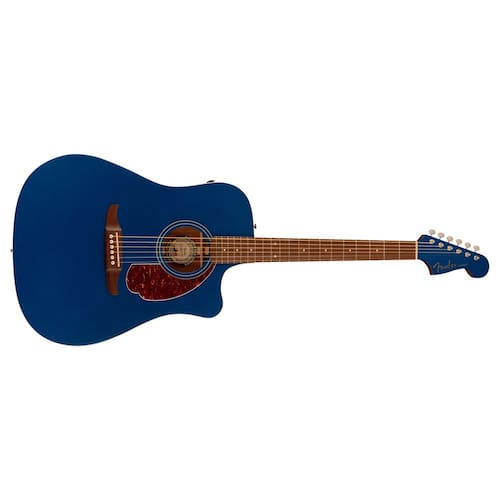 Características: Corpo em formato dreadnought Fender Redondo™ com cutaway Tampo em abeto maciço, costas e laterais em sapele Braço fino em formato de "C" com headstock 6 em linha inclinado para trás Eletrônica Fishman® Flex com transdutor piezoelétrico sob sela Comprimento da escala de 25,5" Raio do braço15,75" (400 mm) Número de trastes: 20 Cordas Fender® Dura-Tone® 880L revestido 80/20 (calibres .012-.052), PN 0730880303 Botões de alça Estilo vintage Controles Botão de volume, tom e tom para controle de fase Eletrônica Especial Fishman® Flex