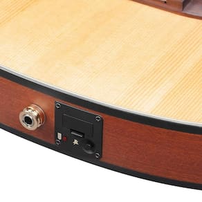 Cor do produto: Natural Flat Cor: Natural Tratamento de superfície: Cetim Tipo: FRH Corte: Sim Construção do Corpo: Semi-sólido Tampo/frente: Abeto maciço Placa traseira: Sapele Lados/ranhuras: Sapele Pescoço: Nyatoh Escala: 648mm Número de trastes: 22 Largura do nut: 46mm Nut: Osso Modelo Eletrônico: Ibanez Custom Afinador integrado: Não Tarraxa de afinação: Ibanez Gold Classical Cordas: D'Addario XTC45 Marca: Não Informado
