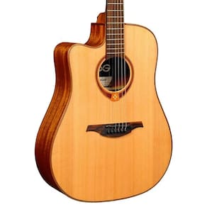 Violão eletro-acústico LÂG Tramontane, cordas de aço, Dreadnought Cutaway, série T118 para canhoto.