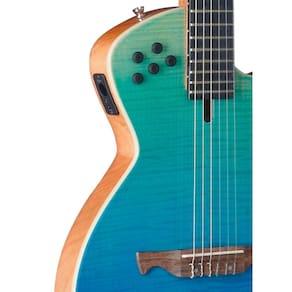 O braço de Maple no formato C e a escala de Rosewood com 22 trastes proporcionam uma experiência de tocar suave e precisa. O nut de osso e o cavalete de Rosewood garantem durabilidade e estabilidade. Equipado com captação Piezo TEQ-10 e EQ Tagima TEQ-10, este violão elétrico oferece uma qualidade sonora excepcional, tornando-o ideal para performances ao vivo e gravações em estúdio. Disponível em cores elegantes como Black, Transparent blue fade, Cherry burst, e Natural satin, o Modena Nylon oferece uma combinação perfeita de visual moderno e som de alta qualidade. Se você busca um violão elétrico de corpo sólido que ofereça conforto e estilo, o Modena Nylon da Tagima é a escolha certa para você.