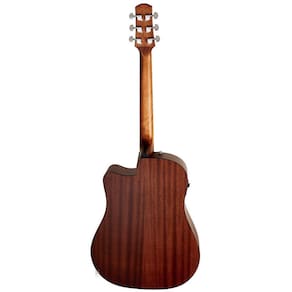 A parte frontal do violão eletroacústico AAD50CE-LG é feita de abeto Sitka maciço, enquanto a parte traseira e as laterais são feitas de compensado sapele, uma madeira visual e botanicamente relacionada ao mogno real. Uma escala de coração roxo com vinte trastes é colada ao braço okoumé. A ressonância do tampo é suportada por nervuras XM modificadas, que transmitem de forma ideal as vibrações das cordas por todo o corpo. Um recorte profundo do corpo Advanced Access Cutaway garante uma boa correspondência mesmo em posições mais altas do braço da guitarra.