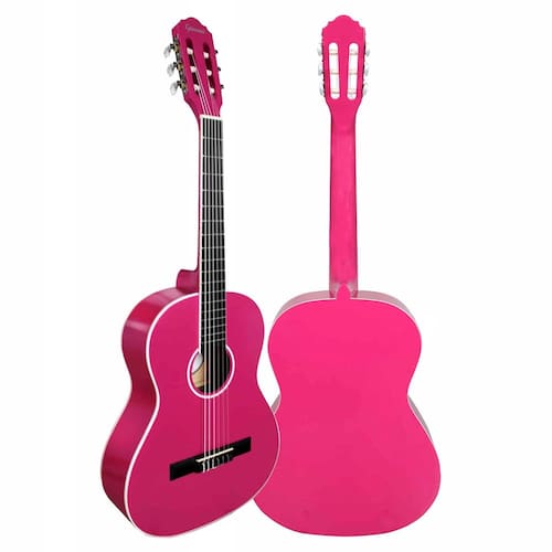 EspecificaçõesOrigem: ChinaShape: Violão padrão clássico, acústicoCor: Pink Glossy (PKG)Tampo: LindenLateral e Fundo: LindenBraço: BasswoodTensor: Bi-direcionalEscala: Maple maciço escurecidoComprimento da escala: 650 mm (25,6”)Cavalete: Maple maciço escurecidoTarraxas: Pino grosso niqueladasPestana: ABSLargura da pestana: 48 mm (1,81”)Rastilho: ABSLargura do rastilho: 80 mm (3,14”)Acabamento: Verniz brilhante com efeito Sparkle em auto-relevoCordas: autênticos da China; recomendamos para troca o modelo Giannini GENWPL LeveHeadstock: Placa adicional em LindenLargura da caixa: 375 x 290 mmAltura da caixa: 98 x 103 mmTamanho total: 100 cm (39,4”)