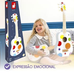Violão Instrumento Brinquedo Musical Infantil Branco Janod Para os pequenos fãs de música, este é um violão infantil de madeira equipado com 6 cordas de metal para fazer de seu pequeno um verdadeiro roqueiro À partir dos 3 anos, os seus filhos poderão descobrir as diferentes sonoridades que esta guitarra pode oferecer e criar as suas próprias melodias. Muito leve e adaptado às mãos pequenas, será perfeito para acompanhar os mais pequenos que o aproveitarão para cantar à flor da pele Prepare-se para seu primeiro show em seu quarto. Brinquedos musicais permitem que as crianças despertem seus sentidos e ganhem confiança. A coleção Confetti possui uma gama completa de brinquedos de instrumentos musicais com designs lindos Os brinquedos musicais Confetti permitem que os músicos mais jovens descubram as alegrias da improvisação musical.
