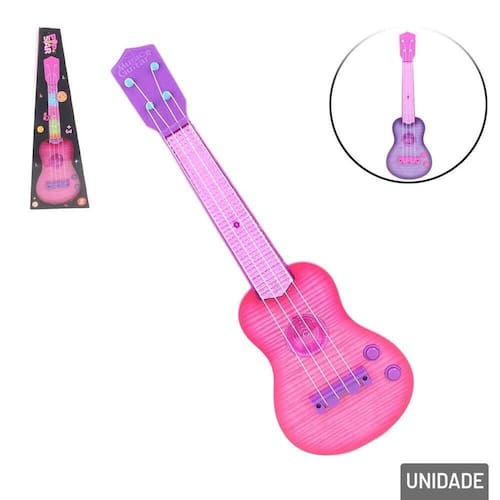 Violão Musical de Plástico Infantil Luzes e Desperte a criatividade musical do seu pequeno com o nosso Violão Musical Infantil de Plástico! Este encantador Violão não é apenas um brinquedo, mas uma verdadeira experiência musical que vai divertir e educar. Com um design divertido e colorido, ele vem equipado com luzes piscantes que acompanham as notas musicais, tornando cada apresentação ainda mais mágica. O som envolvente e alegre estimula a imaginação e o amor pela música, ajudando a desenvolver habilidades motoras e auditivas. Este violão é ideal para mãos pequenas, permitindo que as crianças explorem e experimentem com facilidade. Perfeito para festas, brincadeiras em casa ou para ser levado a qualquer lugar, o Violão Musical Infantil é uma ótima maneira de incentivar a diversão e a criatividade desde cedo!\nEspecificações: Marca: ARK Tipo de material : Plástico, Componentes Eletrônicos Cores ou Estampa : Color Dimensões do Produto : 41 X 13 X 4,5 CM Dimensões da Embalagem : 44 X 14,5 X 5 CM Peso Bruto (Gramas) : 0.234 Número do certificado INMETRO : 007218/2024 OCP 0019 Utiliza: 3x Pilhas AA (Não Inclusas). Disponível em cores . O que vem na Embalagem: 1 Violão de Brinquedo