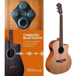 Características: - Marca: Tagima - Modelo: FRONTIER EQ - Cor: Natural - Acabamento: Fosco - Tampo: Spruce sólido - Lateral / Fundo: Sapele - Braço: Okoume - Cavalete e Escala (25.5"): Rosewood - Nut: 43mm - Captação: Piezo - Equalizador: Tagima Ambience com Bluetooth e Afinador - Controles: Volume, Reverb, Delay e Chorus - Bojo: 95mm X 105mm - Tarraxas: Estilo latão envelhecido - Possuí Bluetooth: Sim