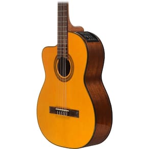 Violão Takamine Gc1ce Lh Nylon Elétrico Canhoto Clássico O modelo de Violão Clássico GC 1CE Canhoto é um belíssimo violão que fornece um som rico de cordas de nylon, uma escolha excelente para qualquer músico buscando um violão acústico acessível que se destaque dos outros com sua faixa de preço. Este modelo possui um acabamento brilhante, madeira do tampo em spruce, madeira do corpo em Mahogany, escala em rosewood com dezenove trastes e tarraxas cromada/madreperola.