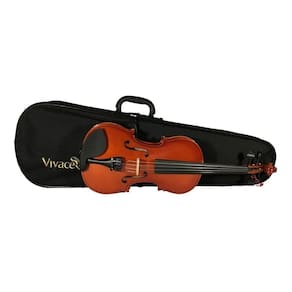 Violino Mozart 1/2 Vivace O Violino Vivace série Mozart é um violino clássico construído para oferecer uma experiência única. Este modelo é construído com tampo de Spruce selecionado, lateral e fundo de Maple trabalhado lhe conferem um belíssimo visual e uma sonoridade impressionante, acompanha arco de crina animal. Para conservar e prolongar sua vida útil, o Mozart é acompanhado de um luxuoso estojo que lhe garante um perfeito acondicionamento