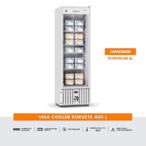 Visa Cooler Sorvete, Porta Vidro Ar Forçado, -22C, 400L, Refrimate, Branco, 220V, Conservação de Sorvetes, Expositor de Sorvetes, Sistema de Ar Forçado, Porta de Vidro Temperado, Iluminação LED, Controle de Temperatura Digital, Refrigeração Comercial, Equipamento para Sorveteria, Geladeira para Sorvetes