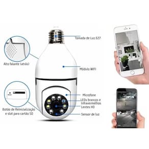 Visão Ampla: Câmera De Segurança Wi-Fi Externa Full HD Gira 360 Instale apenas 1 câmera para monitorar toda a frente de sua casa e tenha Acesso remoto pelo celular de qualquer lugar do mundo com a câmera de Seguranca IPC 360. Agora você pode ter em sua casa, escritório, casa na praia, comércio onde você quiser, uma câmera super discreta. Características: -acesso no Celular Pelo App da câmera -navegação Panoramica -segue Movimento -formato do Vídeo- HD 1MP / 1.3MP / 2MP -recepção de Sinal Wifi -microfone de Entrada Embutido -pode Armazenar na Nuvem -suporta Cartão de Memória de até 128Gb -visão Noturna através do de controle de contraste da imagem, distancia de visão noturna de até 10 metros -gira Horizontal 355 graus, gira Vertical 100 graus -embutido Alarme e Reprodução -chega Notificação no Celular -bivolt -resistente a Água -peso da Câmera- 450g -cor- Branco -medidas: Altura- 17cm Largura- 11cm Profundidade- 16cm Itens Inclusos na Embalagem: -1 Câmera IP360 -1 Fonte de Alimentação -1 Manual Inglês -1 Kit de Parafusos Marca: Não Informado