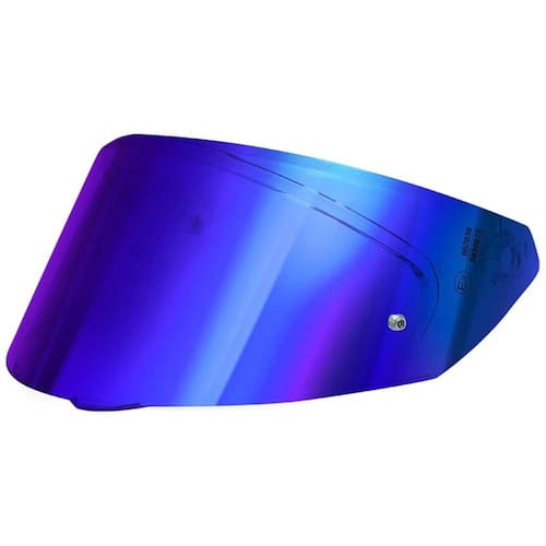 A viseira é fabricada em policarbonato de alta resistência, material conhecido por sua leveza e durabilidade. Conta com tratamento antirrisco, que protege a superfície contra pequenos danos causados por sujeira ou manuseio. O acabamento Iridium Blue não é apenas estético, ele reduz o brilho excessivo e melhora a visibilidade sob luz intensa, como em dias ensolarados.