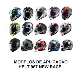 Viseira escura do capacete novo helt new race fume fumê Imagens de capacetes quando houver são meramente ilustrativas Viseira em policarbonato de 2.2mm e dupla curvatura; Com proteção anti-risco que dura até 10x mais; Com proteção uv que protege contra os raios ultravioletas. Marca: - helt Modelo: - esportivo/street Aplicação: - helt new race Race block, race step, race fire, race raptor, race fosco,race rt, race sport, race star, race twist, Material: - policarbonato Espessura: - 2.2mm Proteção uv: - sim Os produtos incluem: - 1 viseira fume uma peça Marca: Não Informado Ean: 6971860099326