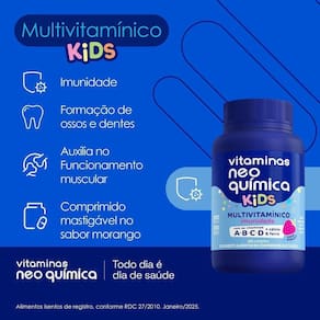 Neo Química Kids, é desenvolvido especialmente para crianças, proporcionando uma maneira saborosa e fácil de suplementar as vitaminas essenciais para o crescimento e desenvolvimento saudável.