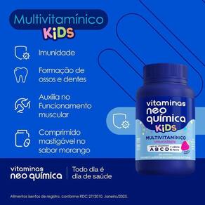 O que é: Neo Química Kids, é desenvolvido especialmente para crianças, proporcionando uma maneira saborosa e fácil de suplementar as vitaminas essenciais para o crescimento e desenvolvimento saudável.