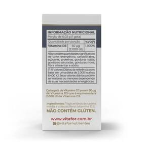 O Vita D3 da Vitafor é formulado com colecalciferol (vitamina D3 de origem natural), diluído em óleo vegetal para garantir melhor absorção. Sua ação auxilia na fixação do cálcio nos ossos, no equilíbrio hormonal, no suporte à imunidade e até no desempenho muscular. Por ser em gotas, oferece fácil dosagem e absorção rápida, sendo indicado para diferentes faixas etárias, conforme recomendação profissional.