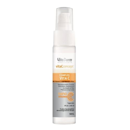 Vita derm vita c concept complex 50ml - o novo complex vita c vem inovando e traz em sua fórmula 40% de vitamina c, o que auxilia na hidratação da pele. Fps 30. Linha exclusiva de vitamina c da vita derm oficial. Principais ativos: - vitamina c nanoencapsulada - acido nanohialuronico - ácido hialuronico - lecitina em nanocápsulas - glicócio, lático, mandélico, kójico
