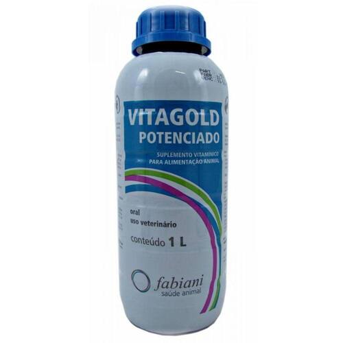 Vitagold Potenciado é indicado em todos os casos em que se necessite a mudança na alimentação, alojamento e transporte, ambiente não favorável devido ao frio, vento, calor excessivo, vacinações e esgotamento. Com mais de 8 tipos de vitaminas Vitagold Potenciado garante um excelente auxilio na alimentação do seu animal E o melhor, não é necessário observar período de carência para o abate e consumo de carne e leite INDICAÇÕESBovinos, ovinos, caprinos, equídeos, suínos, aves, cães, gatos, coelhos e pássaros.Quando se necessita de uma suplementação de vitaminas, especialmente nas situações de elevada produção, mudança na alimentação, do alojamento e transporte, frio, calor ou vento excessivo e esgotamento.APRESENTAÇÃOFrascos de 1L.POSOLOGIAVia oral, com uma colher ou conta-gotas; ou misturado à água ou leite em doses diárias.Bovinos: 3ml a 10ml.Suínos: 0,5ml a 5ml.Equídeos: 3ml a 10ml.Ovinos e caprinos: 1ml a 3ml.Aves: 0,5ml a 2ml/litro de água de bebida.Pássaros: 3 gotas a 6 gotas/100ml de água de bebida.Cães: 10 a 40 gotas (de 0,5ml a 2ml) direto na boca ou diluido.Coelhos: 40 gotas (2ml)/litro de água de bebida.Gatos: Adultos 10 gotas diárias; CARÊNCIANão é necessário observar período de carência para o abate e consumo de carne e leite.Para maiores detalhes, consulte a bula.Sujeito a disponibilidade do estoque.