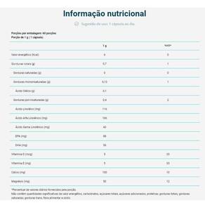 Ingredientes: óleo de peixe, óleo de borragem, óleo de linhaça prensado a frio, cálcio carbonato de cálcio e citrato de cálcio , magnésio óxido de magnésio , vitamina e d-alfa-acetato de tocoferol , vitamina d colecalcifero l , glaceante cera de abelha, antioxidante lecitina de soja. Cápsula: gelificante gelatina, umectante glicerina, água e corante clorofila.