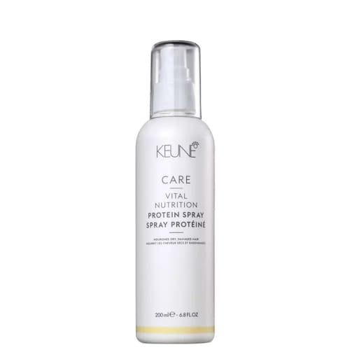 Spray condicionante para cabelos secos, porosos e danificadoss. Keune Care Vital Nutrition Protein protege fios e couro cabeludo nos processos químicos.
