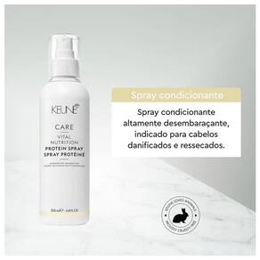 O Spray Condicionante Keune Care Vital Nutrition Protein conta com complexo de minerais essenciais e extratos calmantes que preservam a pele do couro cabeludo e a fibra capilar antes, durante e depois da coloração, descoloração e mudanças de forma das agressões que causam irritações e ressecamento. Sua fórmula hidratante mantém o nível ideal de água para um cabelo com brilho e fácil de pentear.
