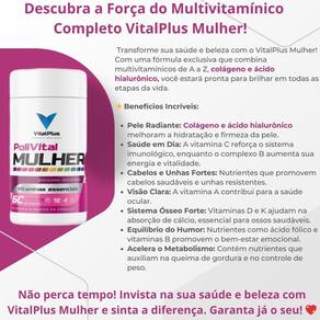 VitalPlus Premium Polivitamínicos Mulher é a escolha ideal para mulheres que buscam um suporte nutricional completo e de alta qualidade. Com 60 cápsulas em um pote prático, este multivitamínico foi desenvolvido especialmente para atender às necessidades nutricionais femininas, promovendo saúde e bem-estar.