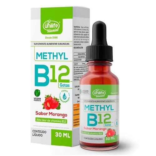 Vitamina B12 Methyl em gotas Unilife sabor Morango 30 ml
