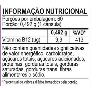 Ingredientes: metilcobalamina vitamina b12 , agente de massa celulose microcristalina, antiumectantes estearato de magnésio e dióxido de silício. Cápsula: água, emulsificantes hidroxipropilmetilcelulose e carragena, regulador de acidez acetato de potássio e corante dióxido de titânio. Não contém glúten. Alérgicos: pode conter leite, soja, peixe e amendoim.