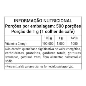 Vitamina c ácido ascórbico 100% pura em pó 500 g bodyactive