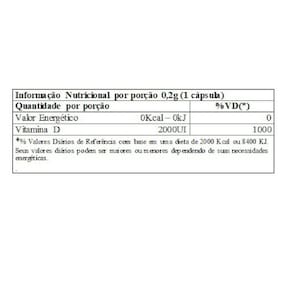 ULTRA D3 2000UI 50mcg Apresentação: 100 cápsulas.A vitamina D auxilia na formação de ossos e dentes, - auxilia na absorção de cálcio e fósforo, - auxilia no funcionamento do sistema imune, - auxilia no funcionamento muscular, - auxilia na manutenção de níveis de cálcio no sangue, - auxilia no processo de divisão celular.Recomendação de consumo: Sugere-se 1 cápsula ao dia durante a principal refeição do indivíduo.Fabricado nos Estados Unidos.Reg. M.S.: Produto Isento da Obrigatoriedade de Registro conforme RDC 27/2010.