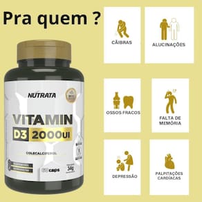 Promove a saúde muscular. Modo de consumo: 1 cápsula ao dia, preferencialmente com uma refeição, ou conforme orientação de um profissional de saúde. Ingredientes: vitamina d3 armazenamento: conservar em local seco e fresco, ao abrigo da luz solar direta. Indicação: indicado para pessoas com deficiência de vitamina d ou para manter níveis saudáveis dessa vitamina. Fabricante: nutrata indústria de alimentos ltda.