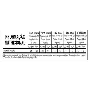 A Vitamina D é um importante nutriente que trabalha principalmente na absorção de cálcio e fósforo, dessa forma melhorando a saúde óssea, além disso, ela também age em diversas áreas do corpo, assim como o sistema muscular, o processo de divisão muscular e o sistema imunológico.A vitamina D é tão importante que a Sociedade Brasileira de Pediatria recomenda o uso de um suplemento alimentar para ajudar a atender às necessidades diárias de 400UI/dia para bebês de até 1 ano e 600UI/dia para crianças de 1 a 18 anos. Para que serve a Vitamina D?A Vitamina D age principalmente no sistema muscular, ósseo e imunológico. Ela auxilia na absorção de cálcio e fósforo, dessa forma melhorando a saúde óssea e a formação de ossos e dentes saudáveis. Quais os benefícios da Vitamina D?Melhoria na Saúde óssea: A vitamina D é um nutriente essencial para ajudar seu filho a manter a saúde óssea adequada, principalmente nos primeiros anos de vida.Ajuda na fortificação do sistema imunológico: Níveis adequados de vitamina D para crianças podem ajudar a manter o funcionamento saudável do sistema imunológico. Posologia / Como usar: Para bebês de 0 a 12 meses: 6 gotas ao dia. Para crianças com mais de 1 ano: 8 gotas ao dia. Indicação:A suplementação alimentar é indicada para evitar a falta de vitamina D e suprir as necessidades diárias das crianças, dessa forma promovendo o desenvolvimento saudável desde os primeiros meses ou anos de vida. O uso diário desse suplemento demonstrou diversos benefícios para as crianças, principalmente no fortalecimento ósseo. Ingredientes: Glicerina Vegetal Orgânica, Água Deionizada, Vitamina D3(Colecalciferol), Flavorizante Natural de Framboesa, Vitamina E.