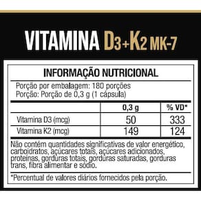 Vitamina d3 + k2 mk7 alta concentração 180 cáps - nutrione A vitamina d3 + k2 mk7 nutrione é essencial para a saúde óssea e cardiovascular, fornecendo uma dose otimizada de 50mcg de vitamina d3 e 149mcg de vitamina k2 por cápsula. Com 180 cápsulas por pote, nosso produto é formulado para maximizar os benefícios à saúde. Benefícios: Suporte à saúde óssea e cardiovascular Neutralização eficaz de radicais livres Combate ao oxidativo Influência positiva no humor Proteção cardiovascular Contribuição para a longevidade Reforço significativo da imunidade Vantagens: Tecnologia de fabricação avançada Fórmula sem glúten Dose otimizada de 50mcg de vitamina d3 e 149mcg de vitamina k2 por cápsula Potência superior no mercado de 180 cápsulas por pote Comprando hoje ganhe gratuitamente um porta comprimidos da nutrione, para manter seus comprimidos seguros, bem acondicionados e organizados. Conte também com nosso serviço de atendimento ao consumidor dedicado: Suporte ao cliente todos os dias da semana exclusiva nutrione você totalmente satisfeito com o nossa vitamina d3 ou seu dinheiro de volta Ingredientes com a melhor qualidade do mercado, inspecionados e fabricados rigorosamente de acordo com as normas da anvisa Marca: Não Informado