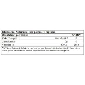 Suplemento de Vitamina E em cápsulas. Apresentação: 60 cápsulas. A vitamina E é um antioxidante que auxilia na proteção dos danos causados pelos radicais livres. Recomendação de consumo: Sugere-se 1 cápsula ao dia durante a principal refeição do indivíduo. Fabricado nos Estados Unidos. Reg. M.S.: Produto Isento da Obrigatoriedade de Registro conforme RDC 27/2010. Marca: Não Informado Ean: 748945120529