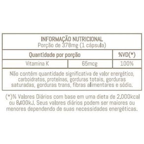 Vitamina K2 Menaquinona-7 - 60 CápsulasA vitamina k2 menaquinona-7 é um suplemento que promove o cuidado integrado da saúde óssea e cardiovascular, ela se apresenta em sua forma mais facilmente absorvida pelo organismo e com maior estabilidade quando comparada a vitamina k convencional, resultando em níveis mais estáveis de sua concentração no sangue.A vitamina k2 é lipossolúvel e atua em diversas funções do organismo, principalmente auxiliando no fortalecimento ósseo, na melhora da circulação sanguínea e na saúde cardiovascular. Essa vitamina está envolvida no processo de inibição da deposição de cálcio nas artérias. Além disso, a vitamina k2 desempenha um importante papel na absorção de cálcio na matriz óssea.378mg de vitamina k2 mk7 Embalagem com 60 cápsulas Produto vegano Referências: - adams, j; pepping, j. Vitamin k in the treatment and prevention of osteoporosis and arterial calcification. Am j health-syst pharm, v. 62, n. 1, aug. 2005.- klack, k; carvalho, j. Vitamina k: metabolismo, fontes e interação com o anticoagulante varfarina. Rev bras reumatol, v.46, n.6, p. 398-406, nov/dez. 2006- schurgers lj1, teunissen kj, hamulyák k, knapen mh, vik h, vermeer c. Vitamin k-containing dietary supplements: comparison of synthetic vitamin k1 and natto-derived menaquinone-7. Blood. 2007 apr 15;109 8 :3279-83. Epub 2006 dec 7.