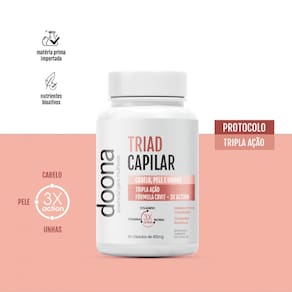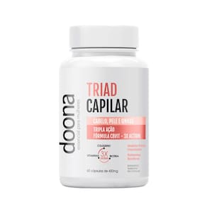 A Vitamina Triad Capilar Doona 60 cápsulas é um suplemento nutricional desenvolvido especialmente para promover a saúde e a beleza dos cabelos, pele e unhas. Sua fórmula exclusiva combina colágeno hidrolisado, biotina e vitaminas essenciais, atuando de dentro para fora para fortalecer os fios, melhorar a elasticidade da pele e aumentar a resistência das unhas. Ideal para quem busca combater a queda de cabelo, unhas frágeis e sinais de envelhecimento cutâneo, este suplemento oferece uma solução prática e eficaz para integrar à rotina diária de cuidados pessoais.